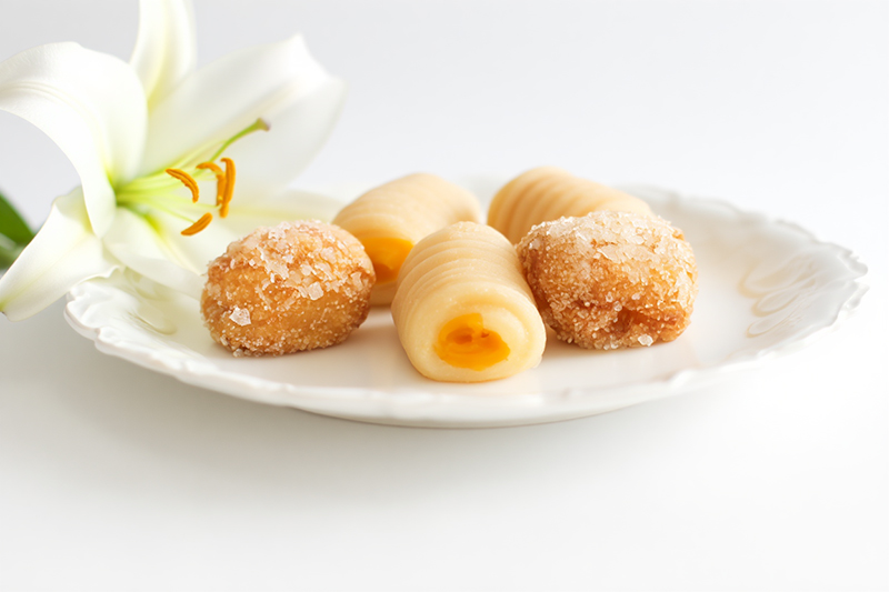 El Día de Todos los Santos tiene raíces cristianas, pero también recoge elementos de antiguas festividades paganas como la Samhain celta, que marcaba el final de la cosecha y el inicio del invierno. Durante esas fechas, se preparaban alimentos especiales para honrar a los antepasados y compartirlos en familia. Con la llegada del cristianismo, la tradición se adaptó: los dulces pasaron a ser una ofrenda simbólica que representaba la pureza del alma (el color blanco del azúcar o la masa) y la dulzura del recuerdo. De ahí que los “huesos de santo”, rellenos de yema y cubiertos de glaseado, adopten una forma tan significativa.